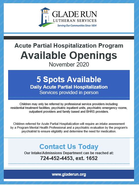 provided in person at Glade Run’s Zelienople campus.