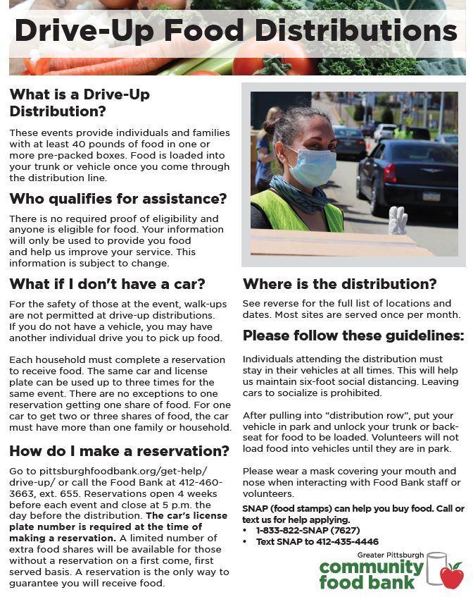 Individuals and families are provided with at least 40 pounds of food in one or more pre-packed boxes at these events. Food is loaded into your trunk or vehicle once you come through the distribution line . . .