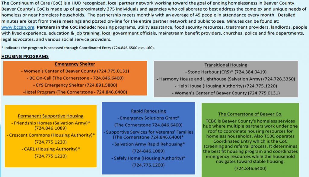 The Beaver County HMIS Coordinated Assessment website has all the centralized needs to establish assistance for the homeless in Beaver County.