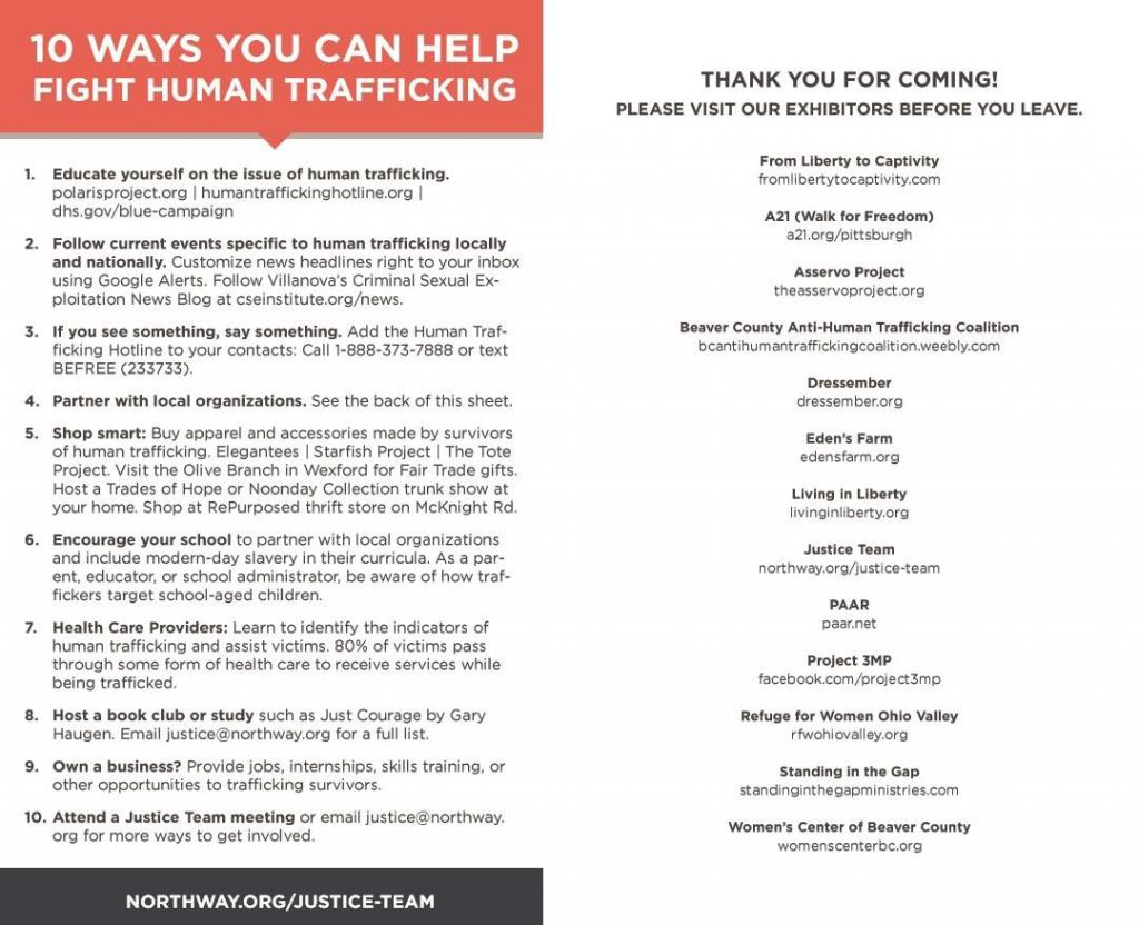 The Justice Team at North Way is dedicated to raising awareness about the plight of victims of human trafficking, and yes, it’s occurring in Beaver County.