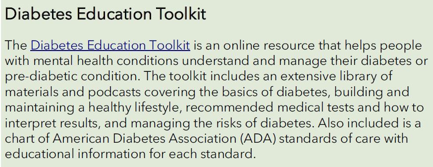 • If you’re a primary care provider, you can use materials from the toolkit to better educate your patients and become more knowledgeable about the intersection of mental health and diabetes.