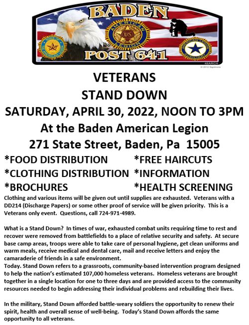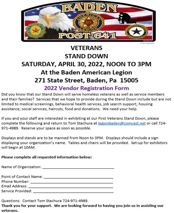 American Legion, Veteran’s of Foreign Wars, Disabled American Veterans, Pennsylvania’s Department of Military and Veterans Affairs